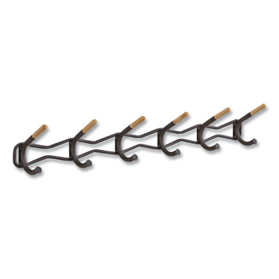 Family Coat Wall Rack, 6 Hook, 42.75w x 5.25d x 7.25h, Black, Ships in 1-3 Business Days